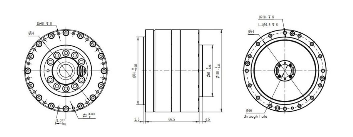 The product can effectively replace some direct-drive motors and hollow rotary platformsRotating actuators such as precision cam splitters and servo-integrated high-ratio planetary reducers.The harmonic reducer is combined with a standard servo motor or a stepper motor.