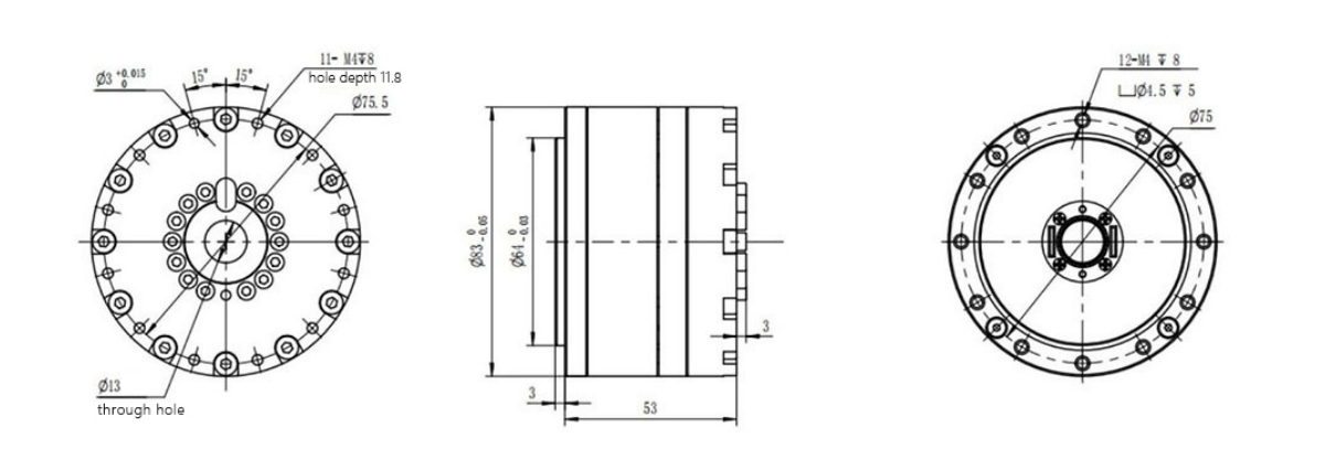 The product can effectively replace some direct-drive motors and hollow rotary platformsRotating actuators such as precision cam splitters and servo-integrated high-ratio planetary reducers.The harmonic reducer is combined with a standard servo motor or a stepper motor.