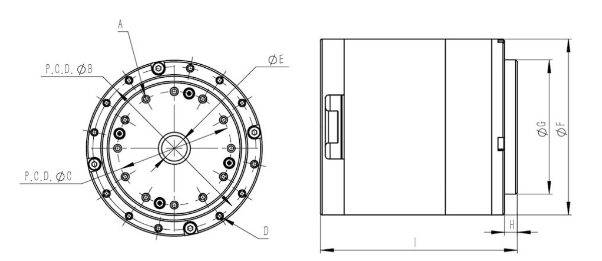The product can effectively replace some direct-drive motors and hollow rotary platformsRotating actuators such as precision cam splitters and servo-integrated high-ratio planetary reducers.The harmonic reducer is combined with a standard servo motor or a stepper motor.