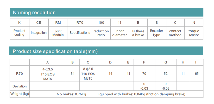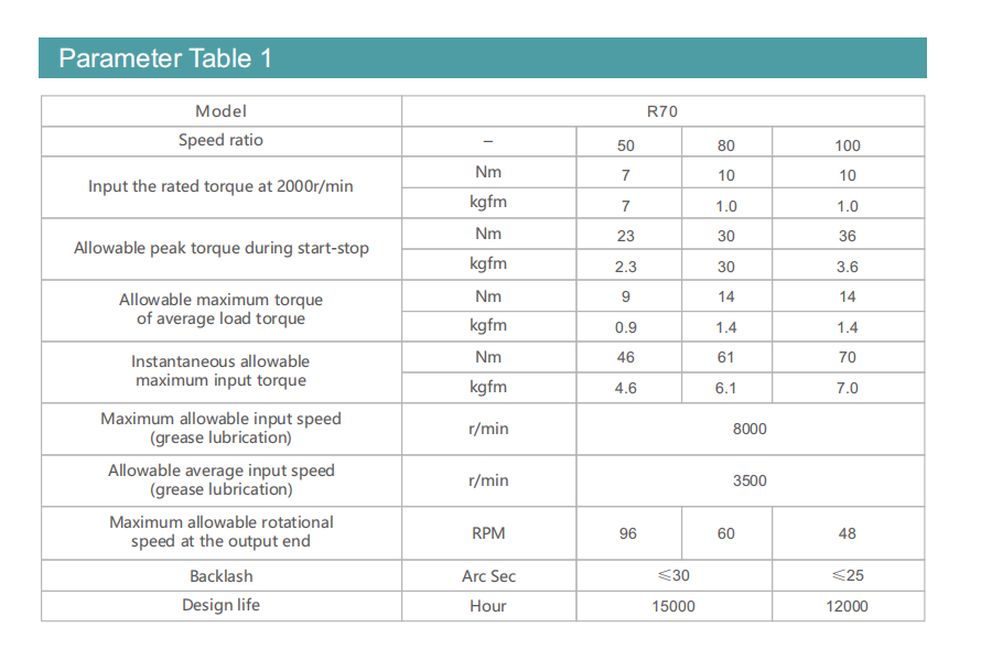 KCERM-R70 series consists of three basic components: flexible gear, rigid gear and wave generator. The flexible gear is a cup-shaped standard structure, and its input shaft directly cooperates with the inner hole of wave generator and connects with it through flat key or fastening screw.