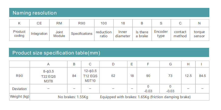 KCERM-R90 series consists of three basic components: flexible gear, rigid gear and wave generator. The flexible gear is a cup-shaped standard structure, and its input shaft directly cooperates with the inner hole of wave generator and connects with it through flat key or fastening screw.