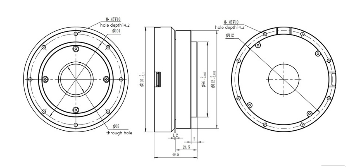 Product features The KCERP-M120 series products adopt photoelectric encoders and are equipped with brakes. It boasts extremely high precision and a compact structure, while also possessing an excellent hollow aperture, It can provide ample space for various cable routing needs.