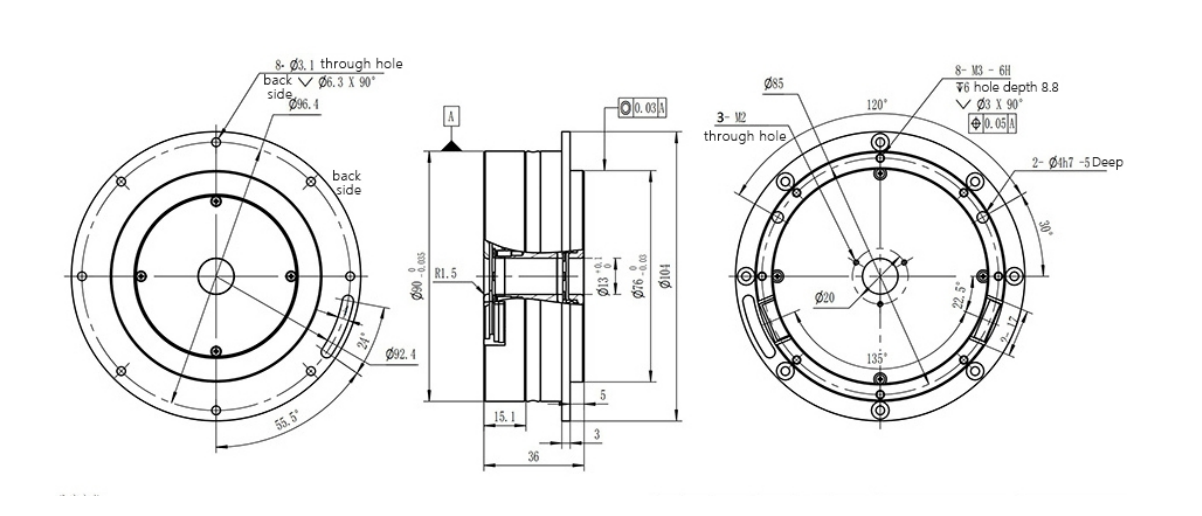 Product features The KHSP-M17100 series products adopt photoelectric encoders and are equipped with brakes. It boasts extremely high precision and a compact structure, while also possessing an excellent hollow aperture, It can provide ample space for various cable routing needs.
