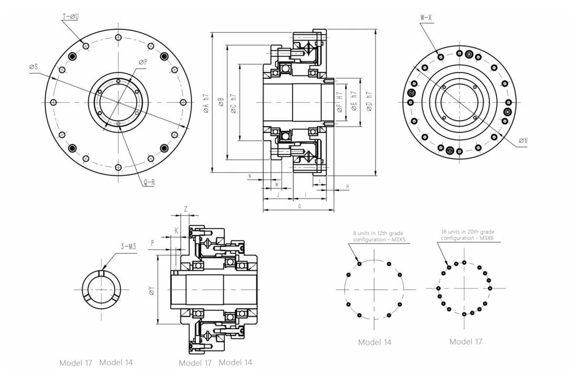 The HMG-E series flexspline adopts a hollow inverted U-shaped standard structure. The wave generator cam features a large diameter hollow shaft hole in its center. The reducer is internally designed with a support bearing and a fully sealed structure, making it easy to install and highly suitable for applications where wires need to be routed through the center of the reducer.