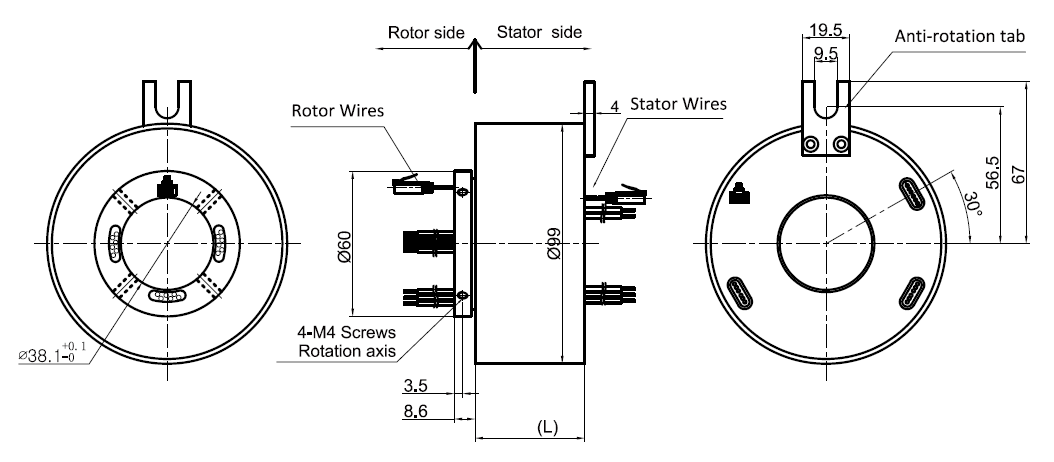 ⑤ Hybrid slip ring for Yaskawa/Panasonic /Siemens servo control signal,main power,encoder