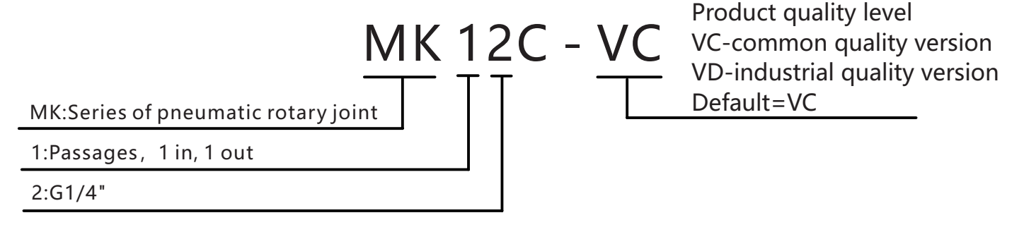 • MK12C series is single channel pneumatic rotary joint, 1 inlet and 1 outlet, it can transmit compressed air, vacuum, G1/4".