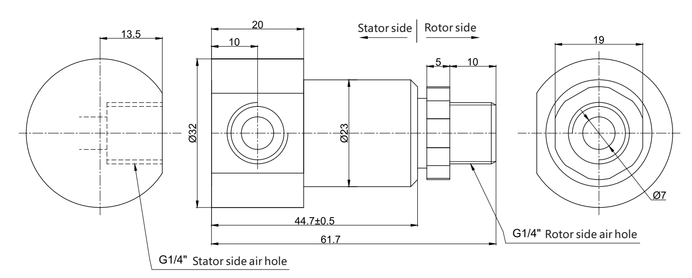 All MK single channel series rotary joints are equipped with male thread shaft and female thread housing for easy installation.